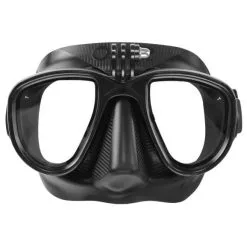 Mάσκα μαύρης σιλικόνης μικρού όγκου. Οι πόρπες είναι τοποθετημένες ακριβώς πάνω στη φούστα, μειώνοντας έτσι το συνολικό βάρος της μάσκας και προσδίδοντας καλύτερη υδροδυναμική.