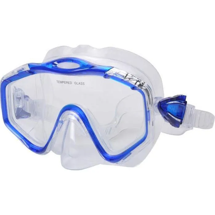Μάσκα με ανοιχτό μπλε πλαίσιο και εύκολα ρυθμιζόμενο λουράκι.