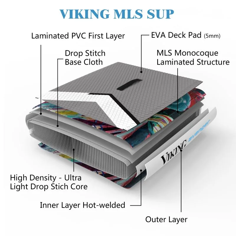 Τα Viking Sup κατασκευάζονται με επάλληλες στρώσεις υψηλής ποιότητας PVC σε άμεση σύντηξη με έναν πολύ πυκνό Drop Stich πυρήνα. Το αποτέλεσμα είναι να επιτυγχάνουν τις κορυφαίες αντοχές φορτίου στην κατηγορία τους.