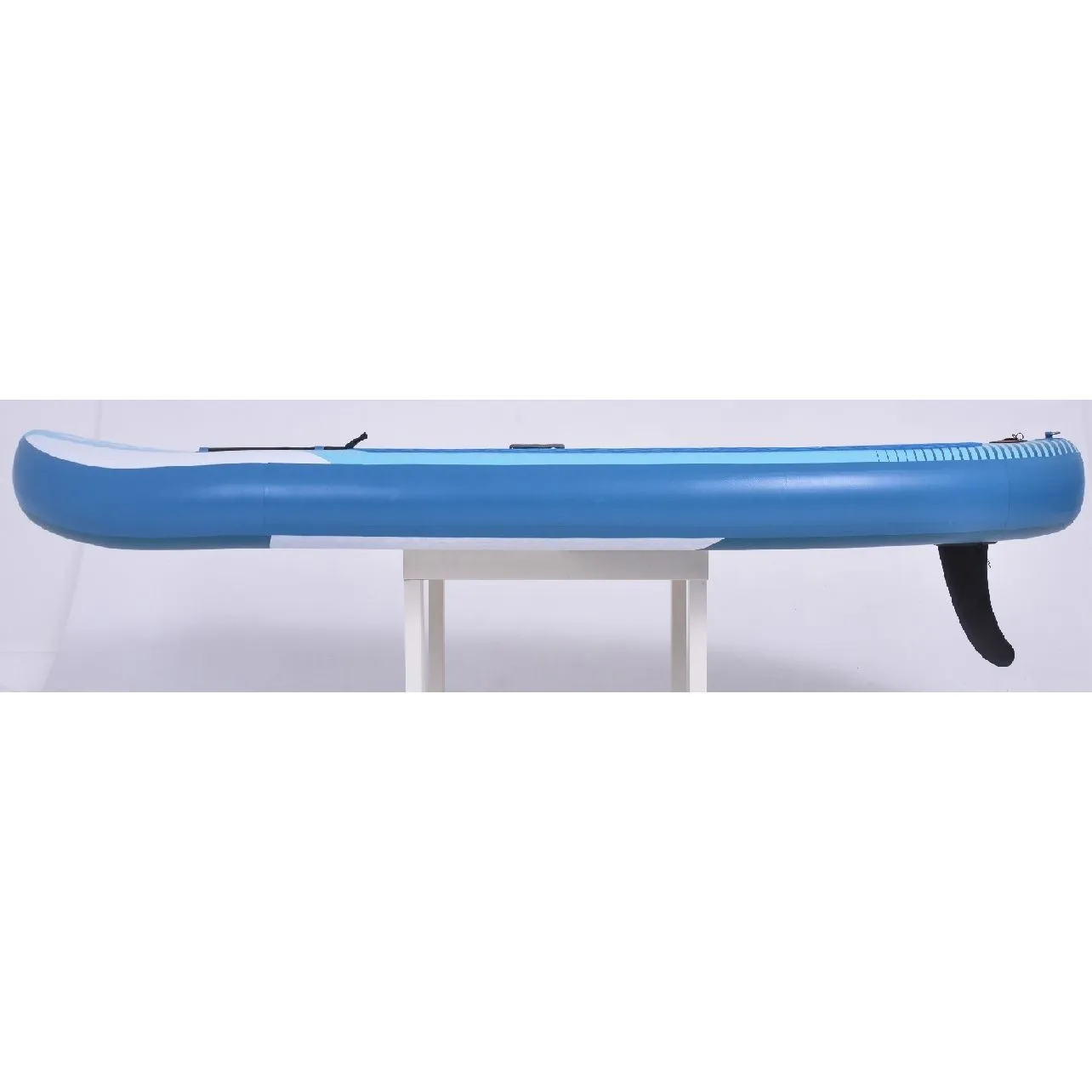 Σανίδα SUP φουσκωτή, σε γαλάζιο χρώμα, με μονό πτερύγιο και kick pad. Προσφέρει σταθερότητα, ευκολία στον έλεγχο και ευελιξία.